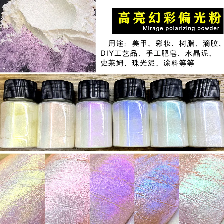 Mermaid Chrome Nail Powder 6 jar set Aurora Iridescent Powder Pigment-White Unicorn Chrome Dust Opal Pearl Mica Powder 10G/Jar